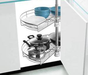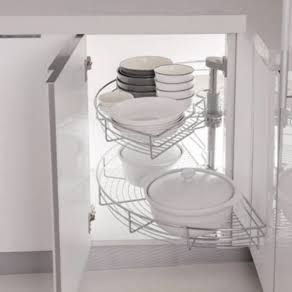 سلة 1/2 دوارة هي نظام تخزين مبتكر مصمم للاستفادة من المساحات الضيقة أو الزوايا في المطابخ والخزائن